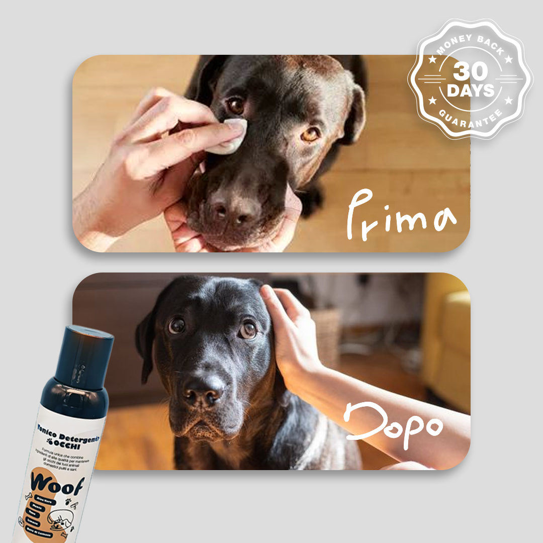 Gli ingredienti naturali come l'idrolato di Camomilla e Hamamelis creano una barriera protettiva, evitando che sporco e germi penetrino negli occhi del cane.